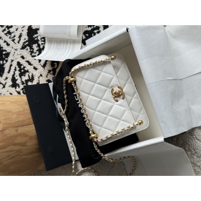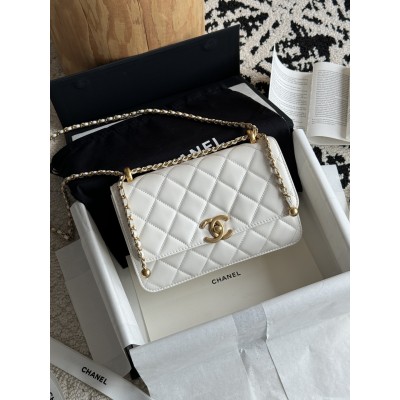 White - Gold Double - Pearl Quilted Bag (Large Size)