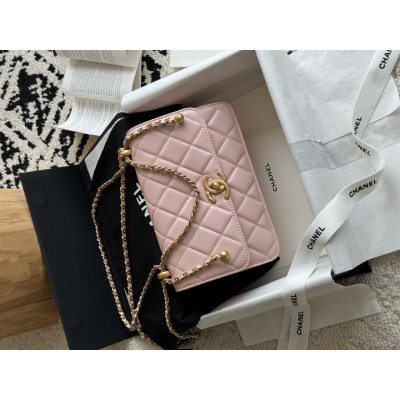 Light Pink Double - Pearl Quilted Handbag(Large Size)