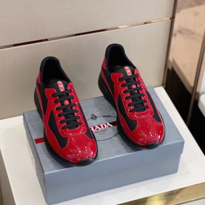 Red and Black Color-blocking Patent Leather Casual Shoes