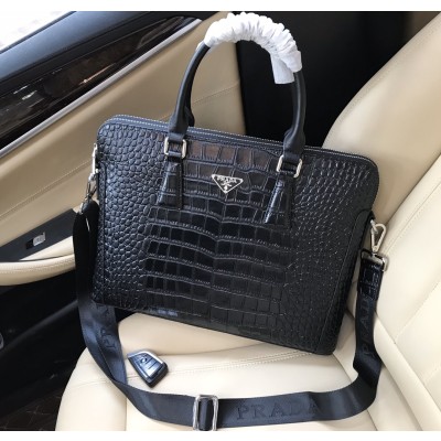 Crocodile - Embossed Black - Gold Briefcase 0151-1
