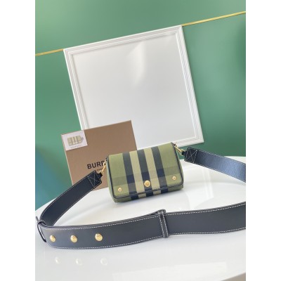 Military Green Checkered Rivet Decorated Crossbody Bag