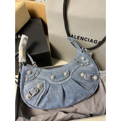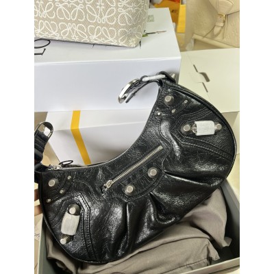 Crescent-shaped Single Shoulder Bag with Diamond Inlays