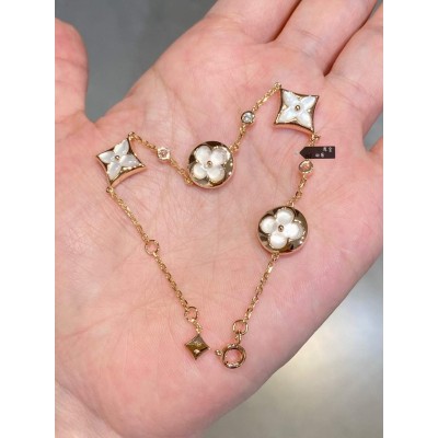 Mother-of-Pearl Floral Gold Chain Bracelet