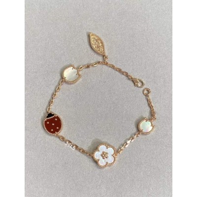 Ladybug and Mother-of-Pearl Floral Gold Bracelet