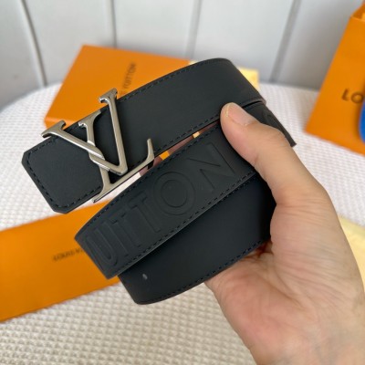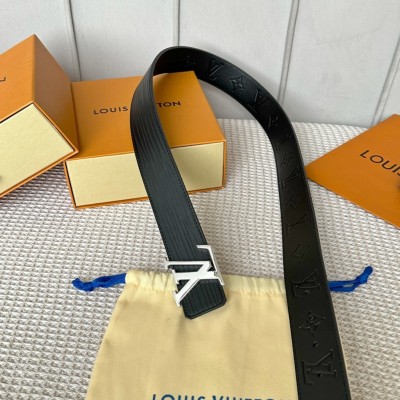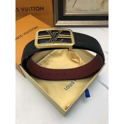 Color-blocking Letter Buckle Monogram Embossed Leather Belt