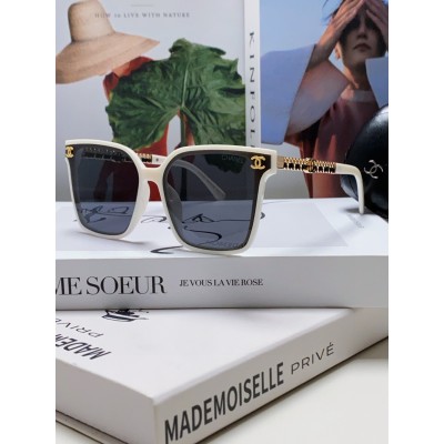 Classic White Frame Double C Gold - Decorated Sunglasses