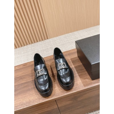 全黑银扣乐福鞋