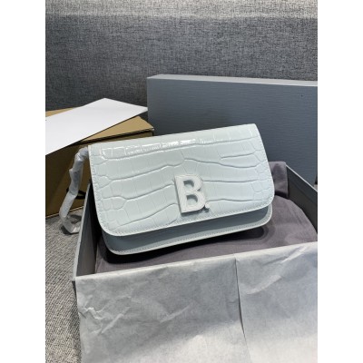 Light Blue Crocodile Pattern Embossed Single Shoulder Bag
