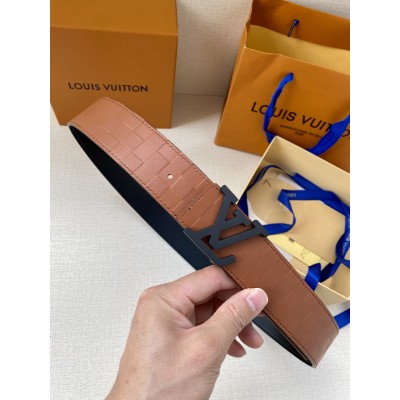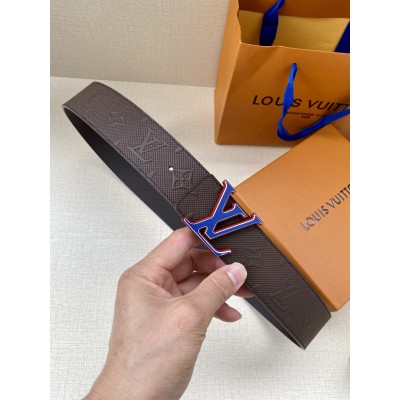 Color-blocking Letter Buckle Monogram Embossed Leather Belt