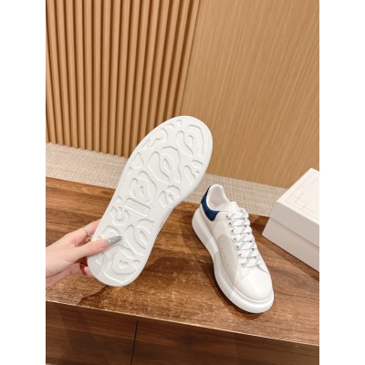 Custom Silk Calf Leather Sneakers with Royal Blue Heel Accent — Unisex Edition