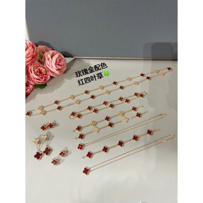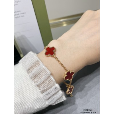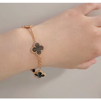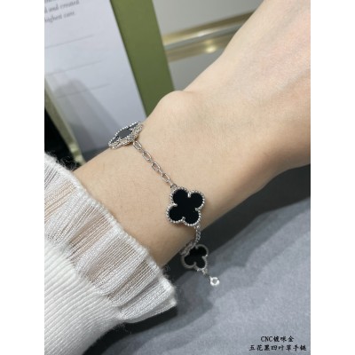Five-Flower Grey Mother-of-Pearl Four-Leaf Clover Bracelet